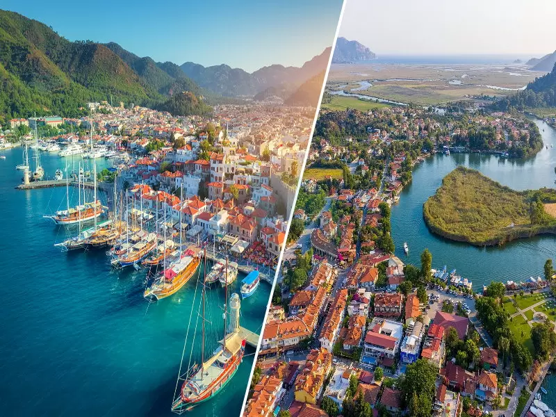 Türkiye'nin güneybatı kıyısında yer alan gizli mücevher Dalyan'a, Marmaris'ten büyüleyici bir yolculuğa çıkın. İster manzaralı bir sürüş, ister otobüs ve tekne kombinasyonu, ister rehberli bir turun rahatlığını seçin, seyahat rehberimiz rotanızda gezinmenize ve Dalyan'ın doğal harikalarını ve kültürel zenginliklerini keşfetmenize yardımcı olacaktır. Büyüleyici Dalyan Nehri'ni keşfedin, antik kaya mezarlarına hayret edin, el değmemiş İztuzu Plajı'nda rahatlayın ve kendinizi bu pitoresk kasabanın eşsiz cazibesine kaptırın, böylece Marmaris'ten Dalyan'a olan yolculuğunuzu doğayı, tarihi ve dinlenmeyi harmanlayan unutulmaz bir deneyime dönüştürün.