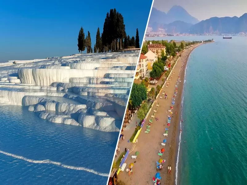 Pamukkale'den Ege Denizi'nin muhteşem turkuaz kıyıları boyunca yer alan sakin bir sahil köyü olan Çalış'a unutulmaz bir yolculuğa çıkın. İster araba, ister otobüs veya tekneyle olsun, bu doğal rota sizi büyüleyici manzaralara, antik kalıntılara ve büyüleyici kasabalara götürür. Pamukkale'nin büyüleyici traverten teraslarına veda edin ve dinlenmenin ve doğal güzelliğin her fırsatta sizi beklediği Çalış'ın rahat plaj havasına, nefes kesen gün batımlarına ve sıcak misafirperverliğine kendinizi kaptırmaya hazırlanın.